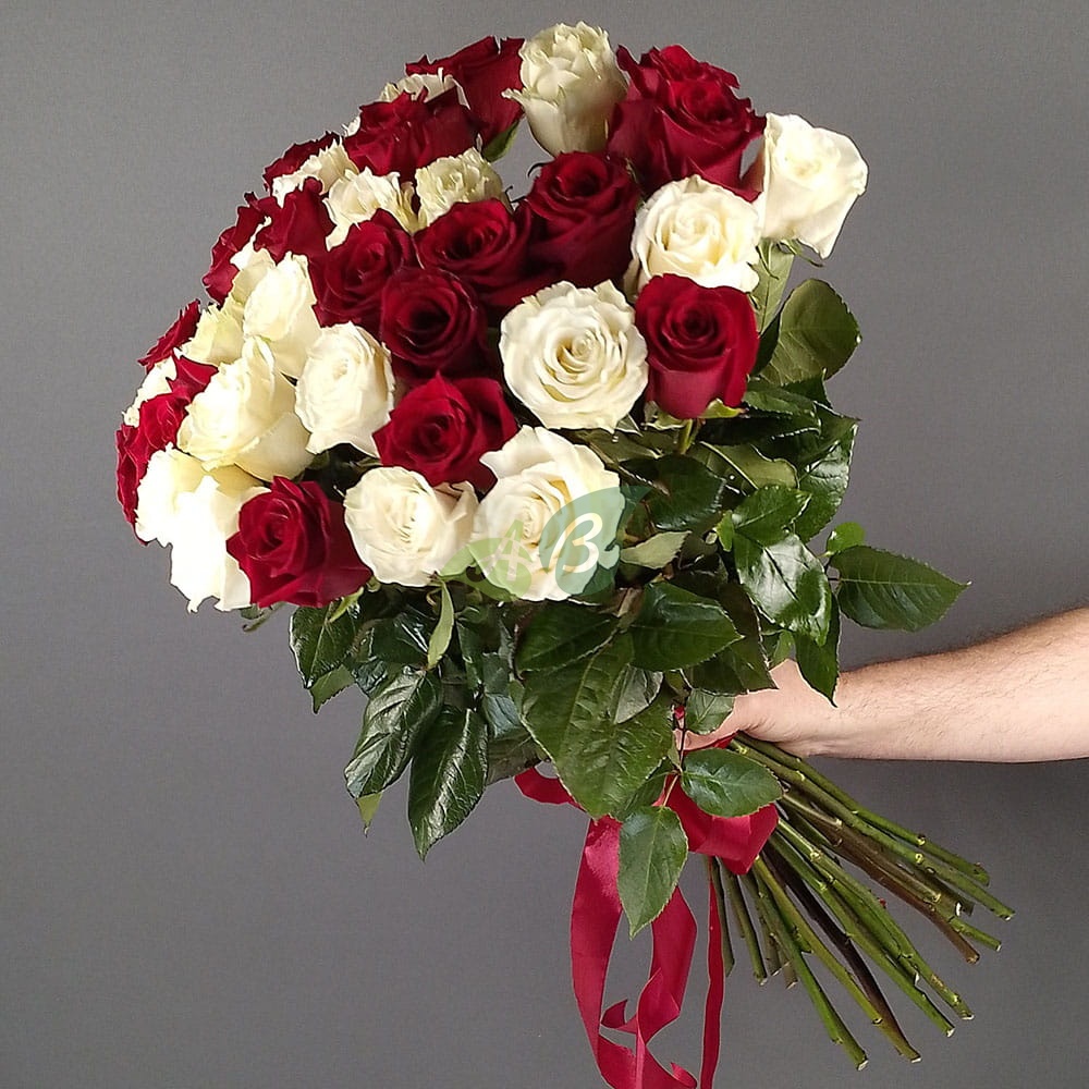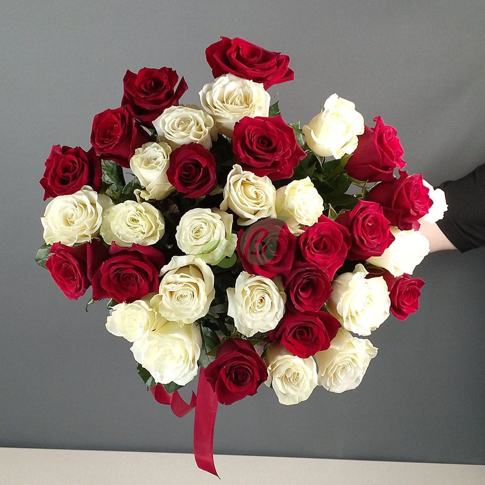 Букет "25 красных и белых роз" Премиум (70 см)